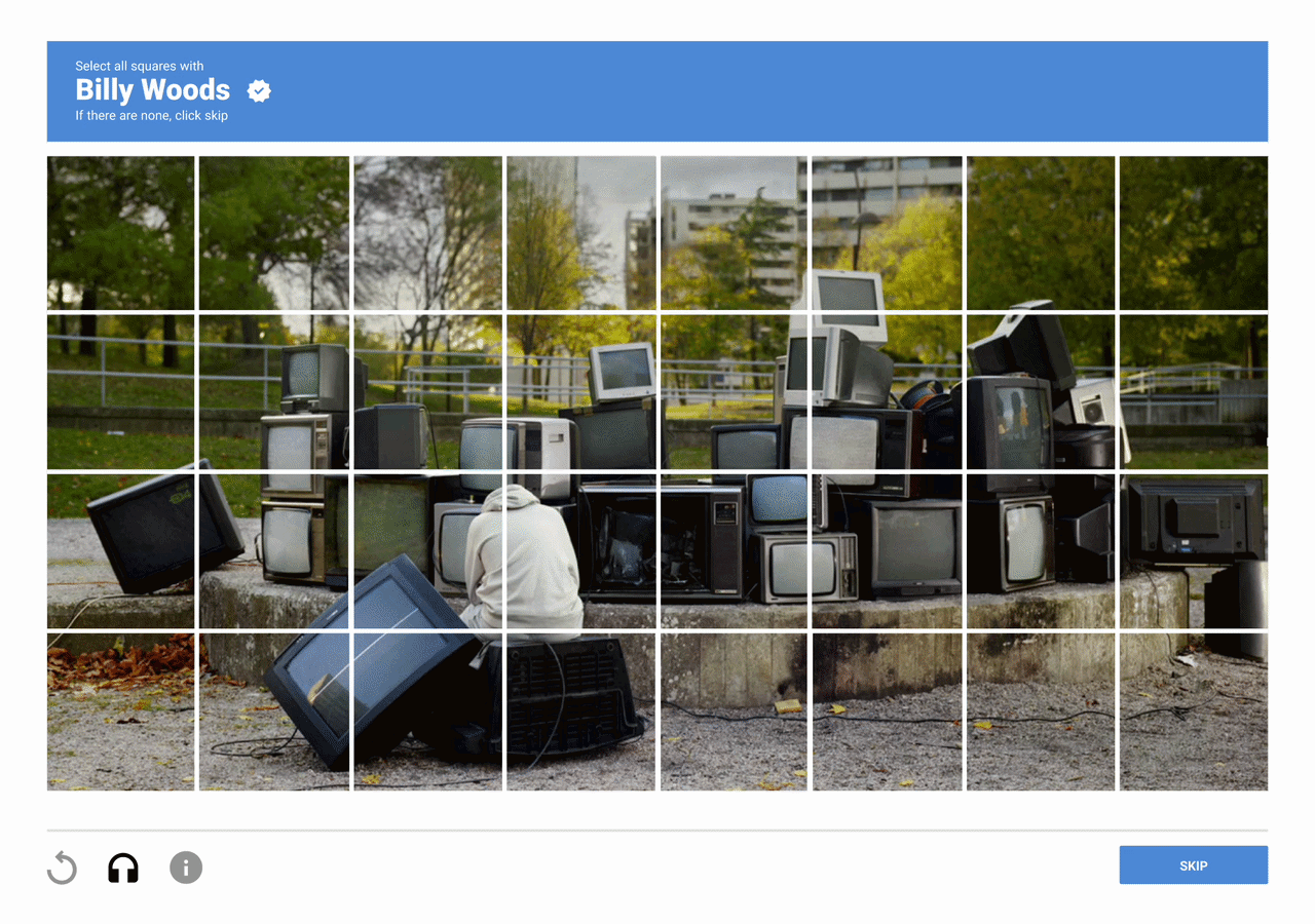 This is a personal project for an up-coming artist. CAPTCHAs are tools you can use to differentiate between real users and automated users, such as bots. In this project once the correct squares are selected the artist’s latest music video plays. Concept and photography by Anna & Ben Brooks. Design and Figma prototype by Luana D’Elias Thomas.